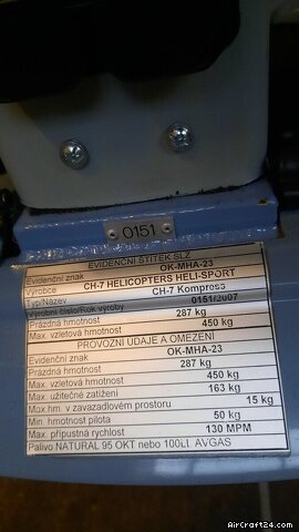 概况 | 类型: | 直升机 (活塞) | 品牌: | CH-7 | 型号 1: | CH-7 Kompress | 制造年: | 2007 | 系列号: | 0151 | 属性: | 始终(一直)停留在机库 | 地点: | 德国 | 时间总计: | 120 h | 价格: | € 65.000 (~ US$ 75.446) | 乘客数量: | 2 |