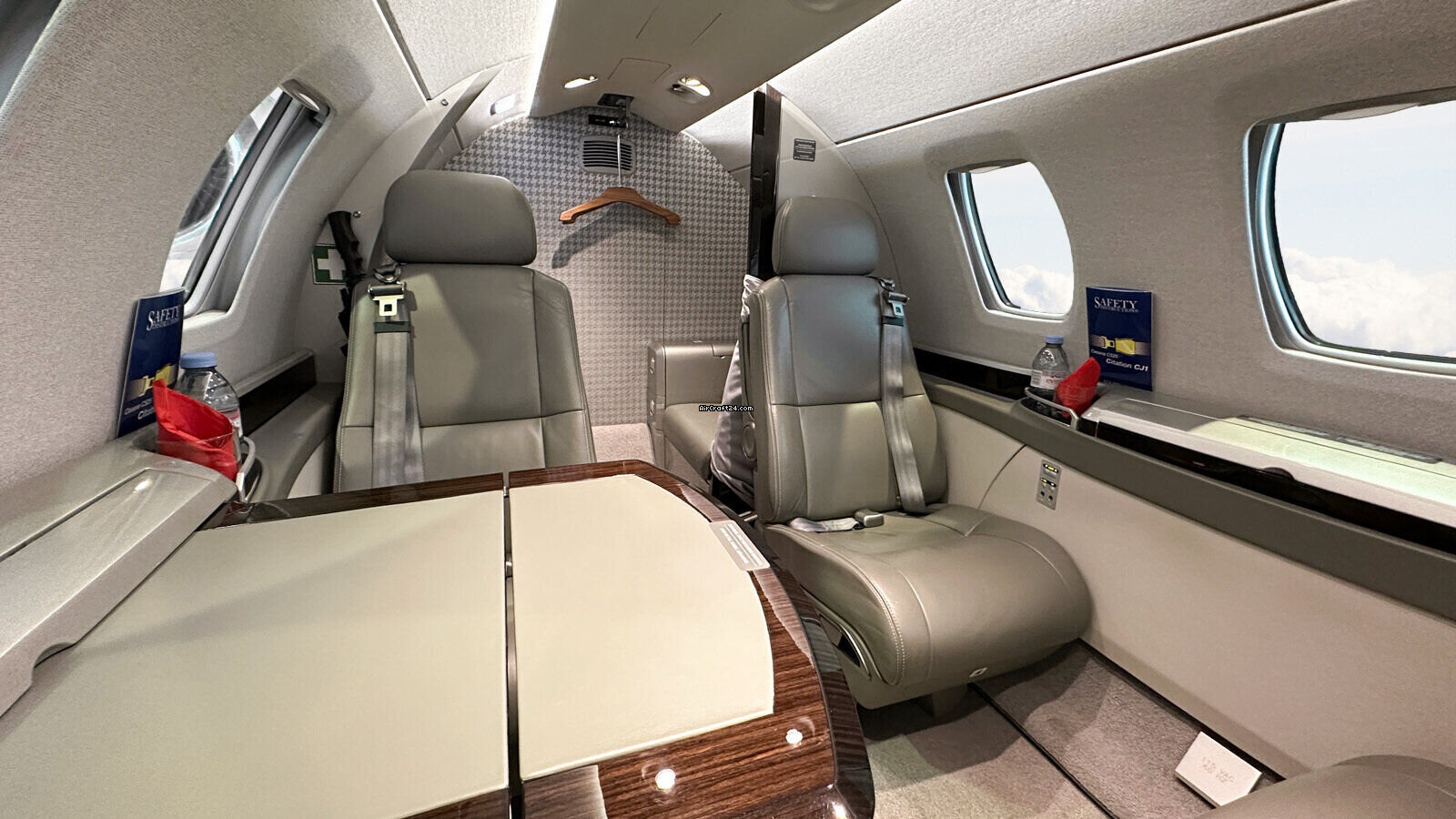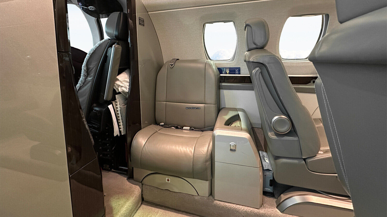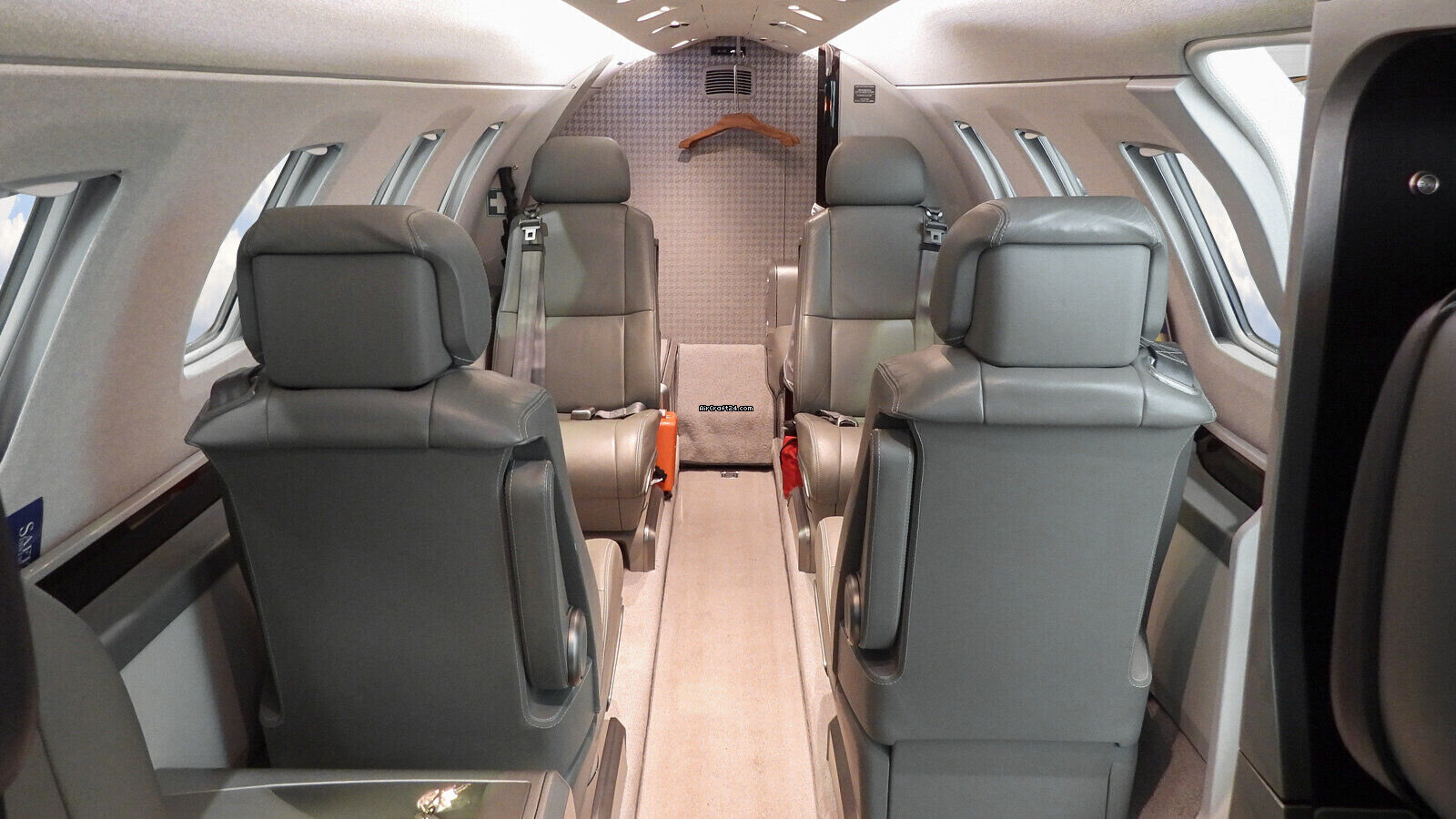| ÄÚ²¿ | | Four (4) passenger executive club seating in “Polar Interior scheme” plus side- facing seat and belted Lavatory seat, light grey carpet, brown wood veneer with grey leather inserts, LED lighting; High Speed Data / WIFI,115 V Cockpit and Cabin power outlets with also USB charging points, brushed aluminum hardware |