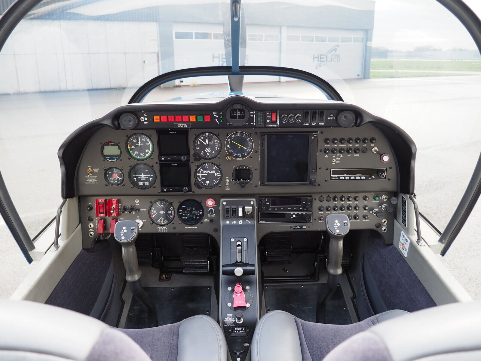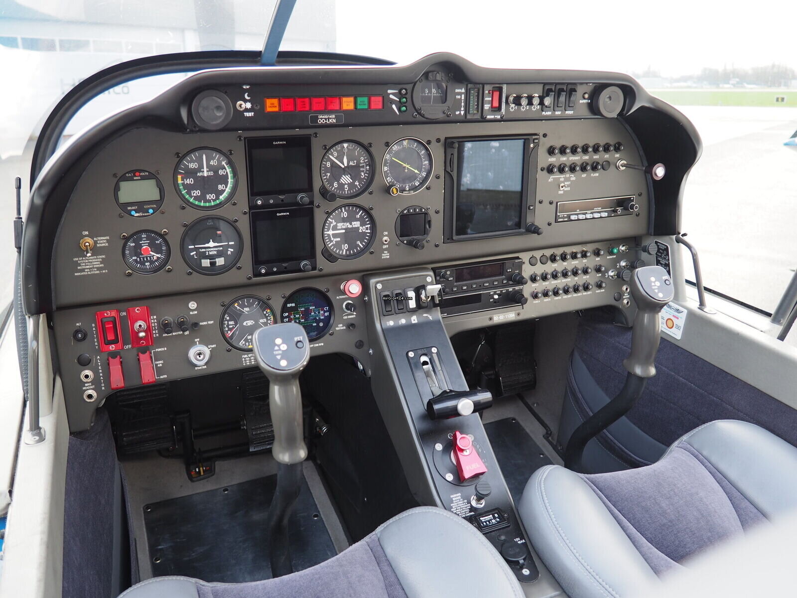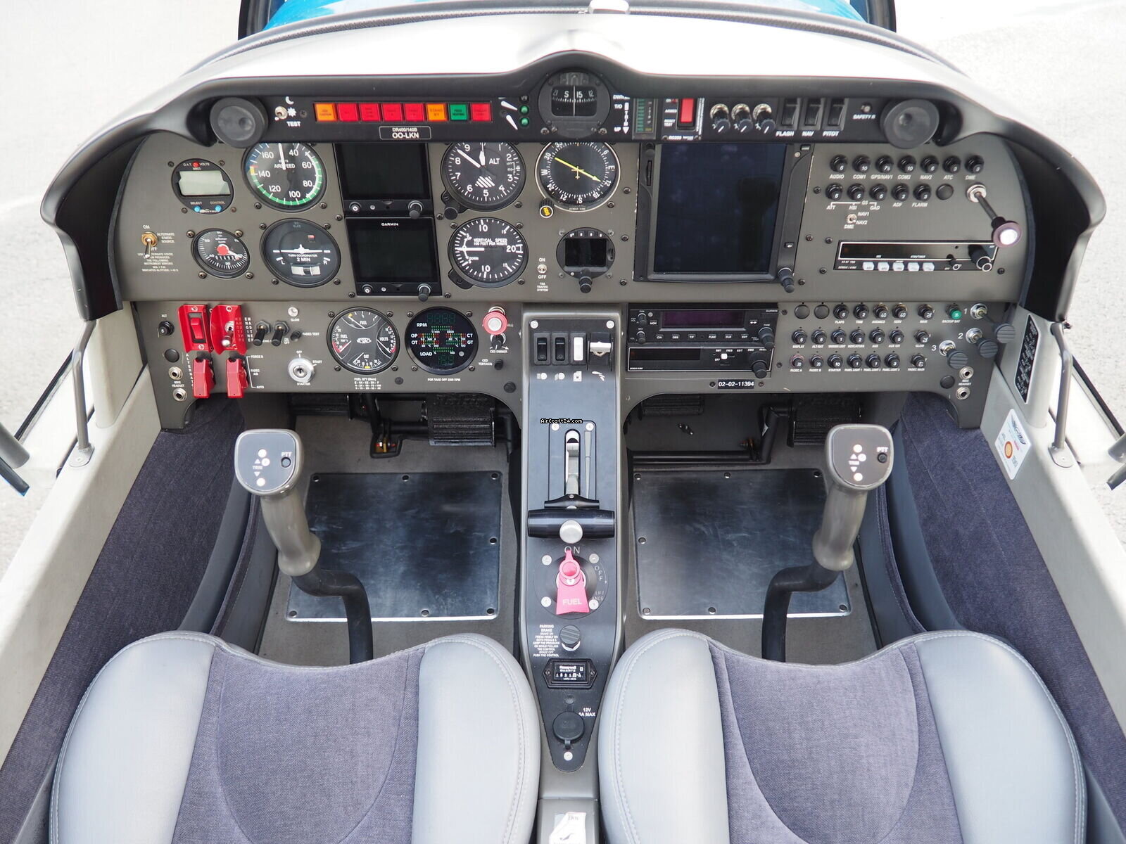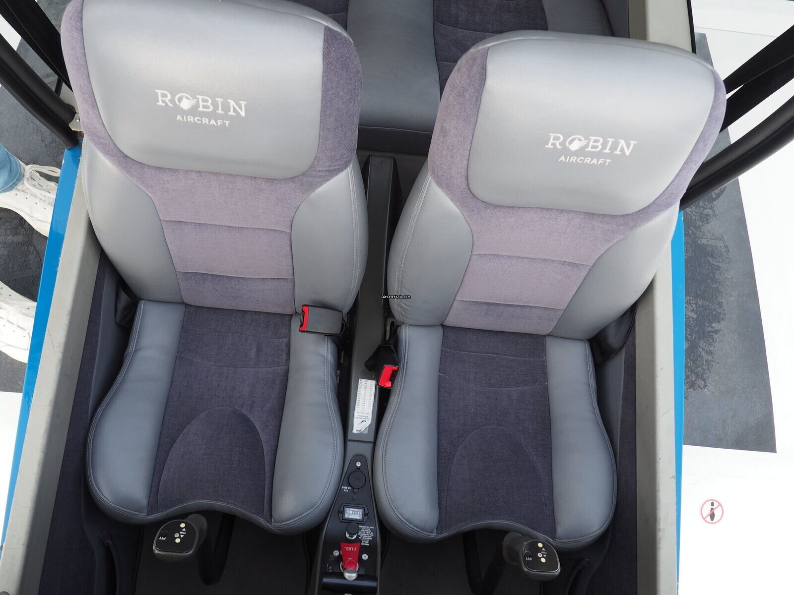 | 内部 | | The cabin of this Robin DR-400 is a testament to thoughtful ergonomics and premium materials, offering a spacious four-seat configuration that ensures comfort for both pilot and passengers. The interior features a striking slate-grey and charcoal upholstery design. The seats are finished in a durable, high-quality fabric with light grey synthetic leather accents for a modern, automotive-style feel. |