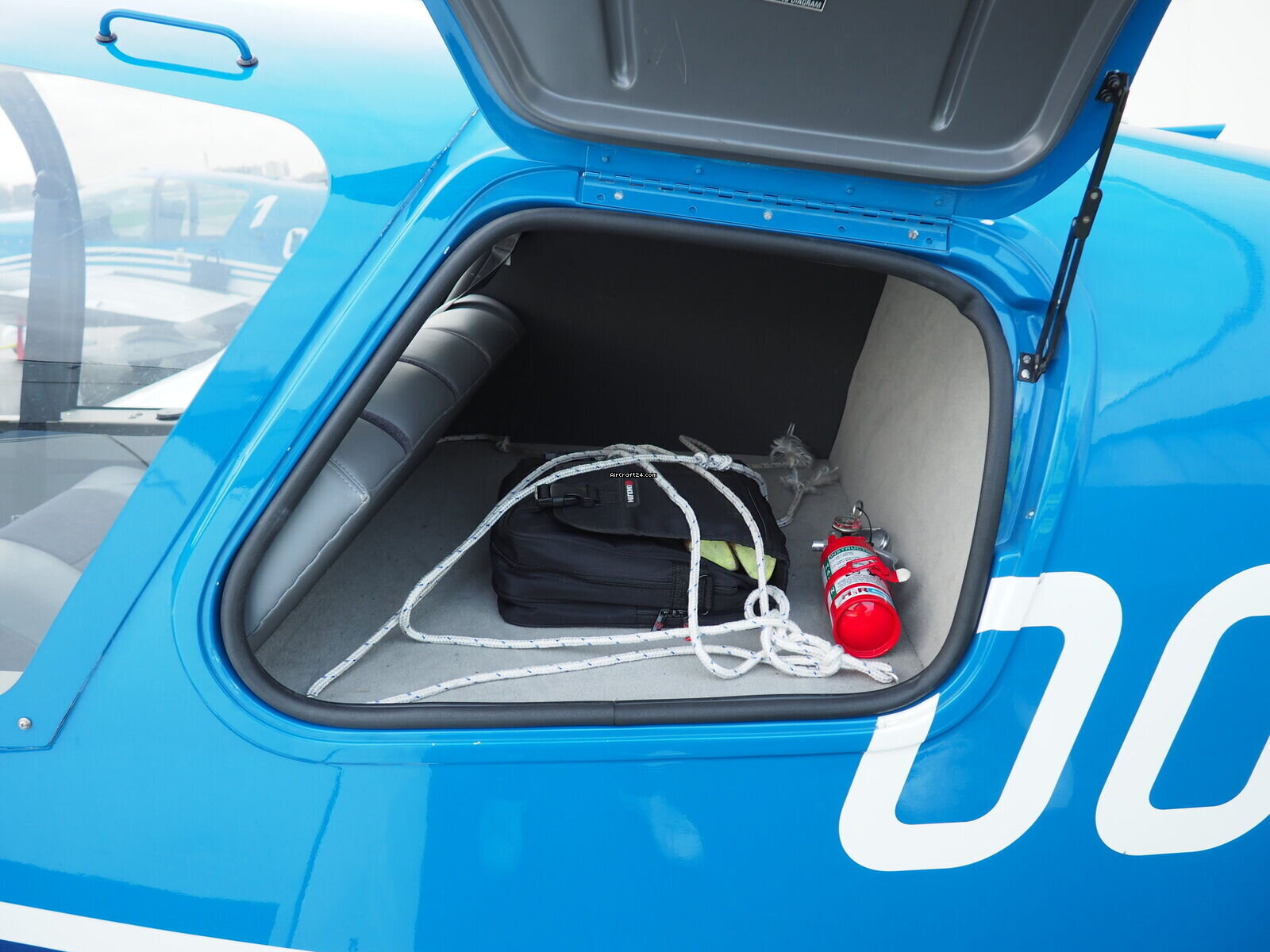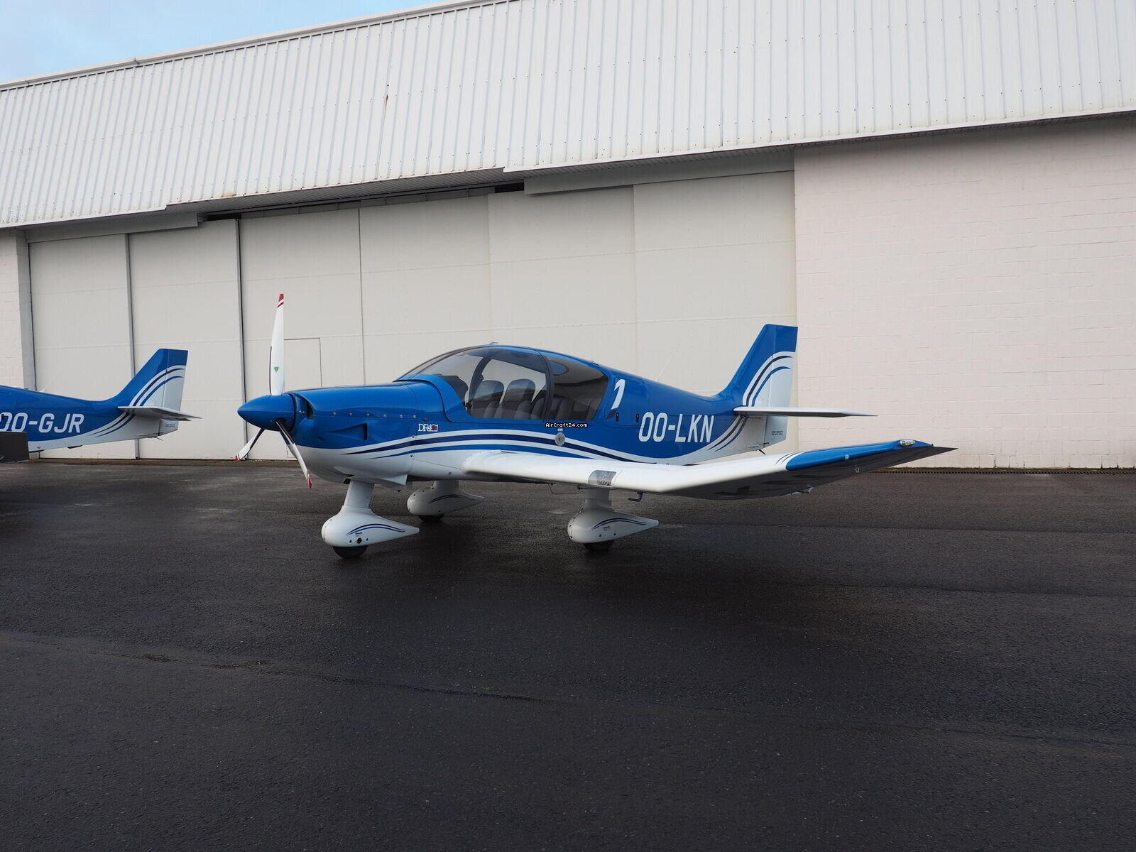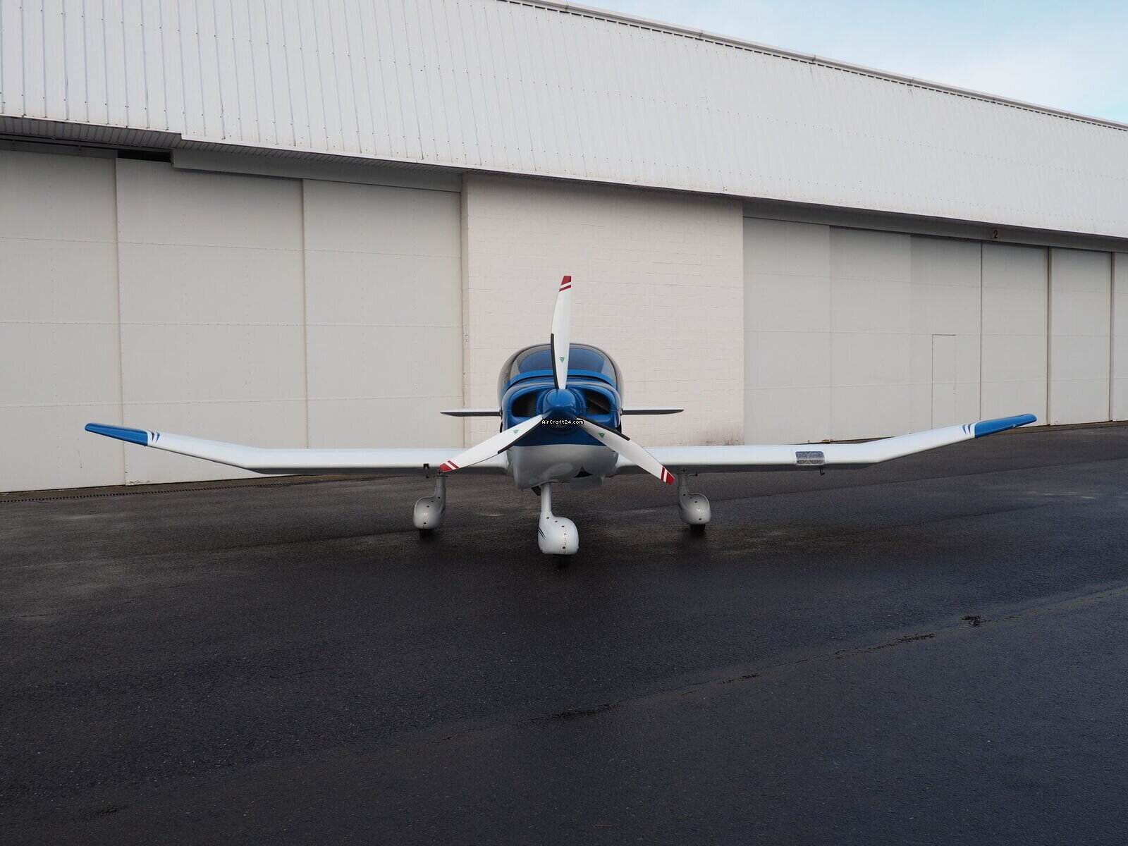 | 外部 | | Finished in a stunning electric blue over crisp white, this aircraft commands attention on any ramp. The dynamic "S-curve" striping emphasizes the sleek lines of the modern DR-400 fuselage |